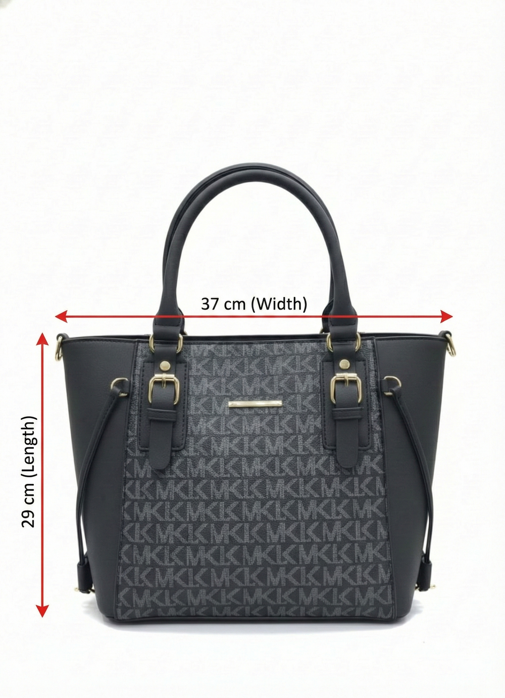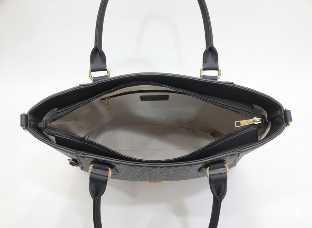 The Executive Tote: Our largest piece, featuring a structured silhouette, dual comfort-grip handles, and elegant buckle detailing. Spacious enough for a tablet, documents, and your daily essentials.
