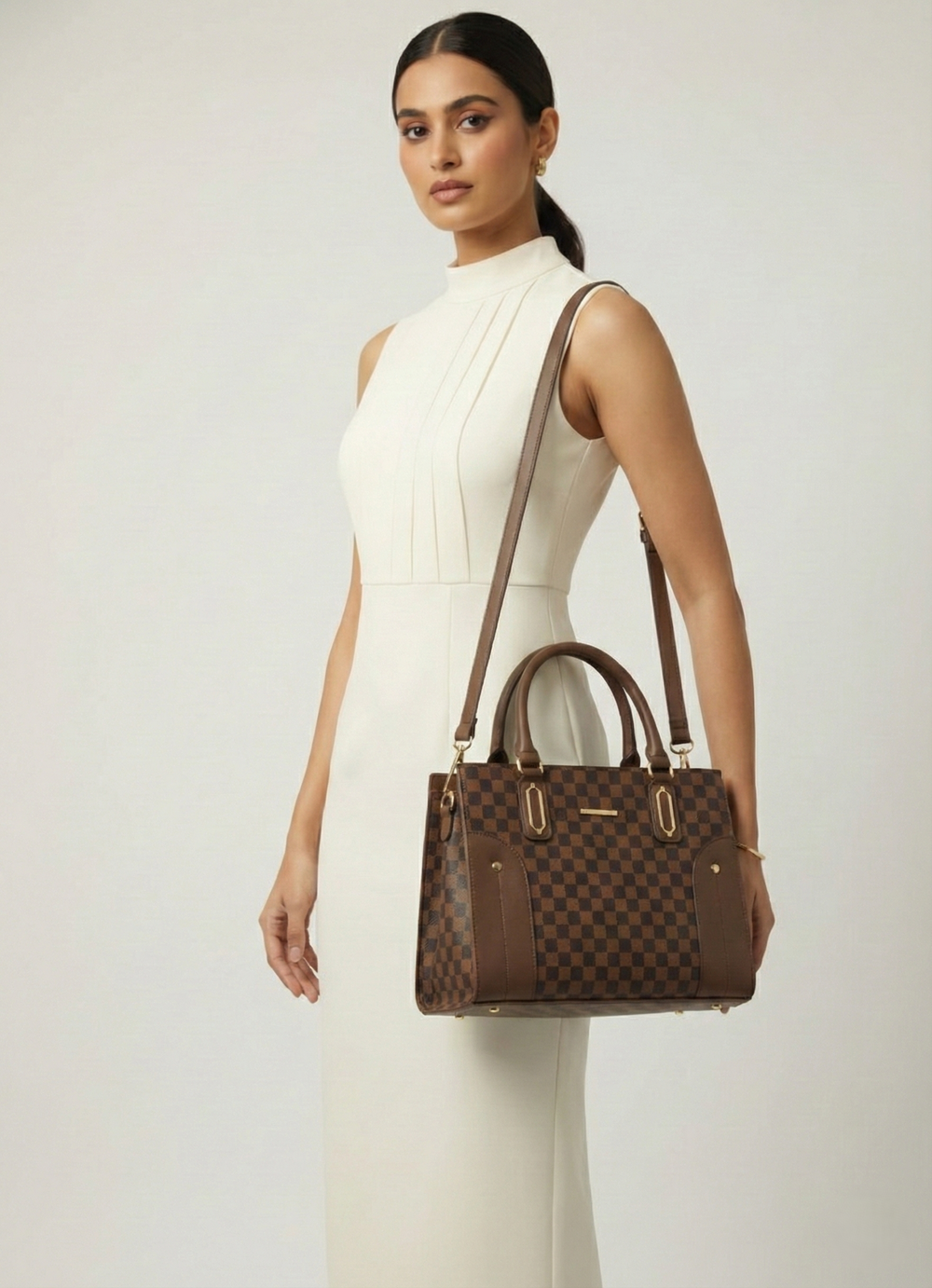 Timeless Aesthetic: Crafted with a premium dark chocolate and tan checkered pattern that never goes out of style.