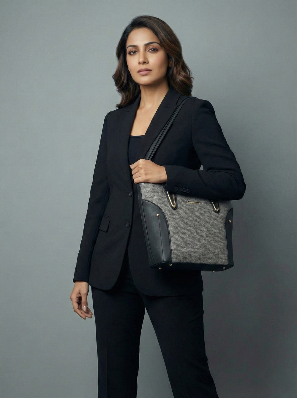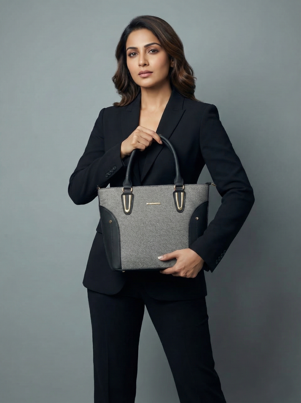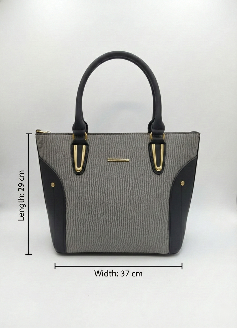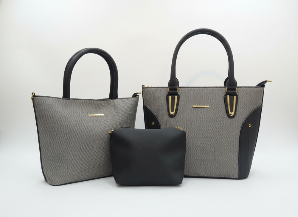 Elevate your daily ensemble with this versatile 3-piece handbag collection. Designed for the modern woman who values both style and organization, this set offers a seamless transition from the boardroom to a weekend brunch. Featuring a sophisticated interplay of textured charcoal grey fabric and sleek black vegan leather, each piece is finished with premium gold-tone hardware for a touch of luxury.