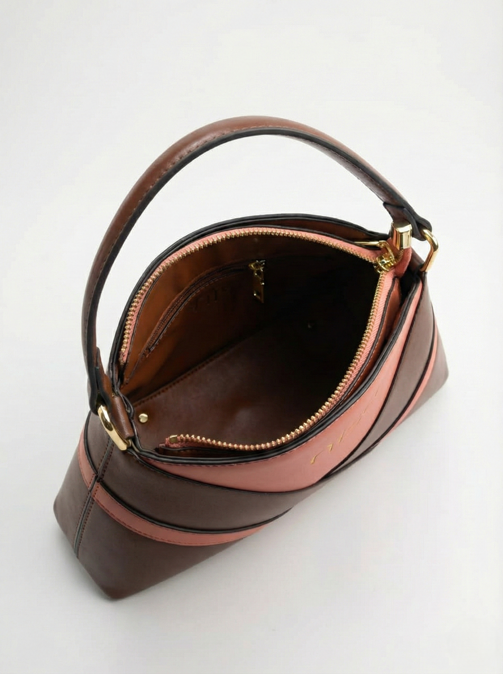 Elevate your everyday ensemble with the stunning Nisa Color-Block Handbag Set. Designed for the modern woman who loves a touch of contemporary flair, this bag features a striking geometric design that blends soft coral pink with deep mocha brown.