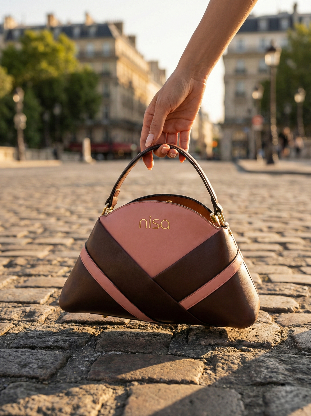 Designer Details: Finished with elegant gold-tone hardware and the signature Nisa logo.