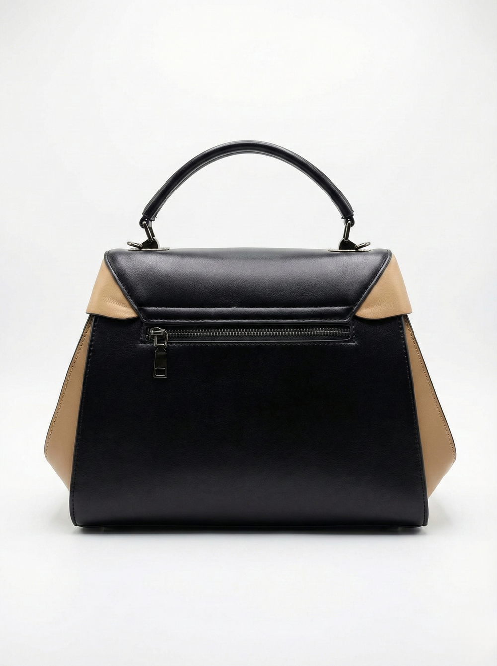 Elevate your daily ensemble with this striking architectural masterpiece. The Modern Dual-Tone Satchel perfectly balances bold geometry with timeless elegance. Featuring a stunning V-shaped color-block design, the deep black body is beautifully framed by smooth tan accents, creating a look that is both professional and chic.