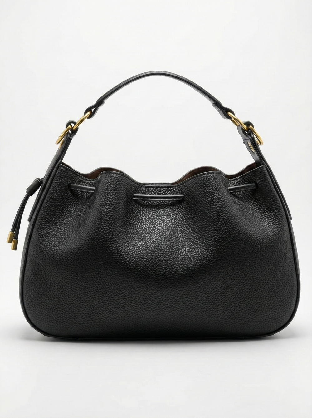 Gold Accents: High-shine hardware that pops against the deep black finish.