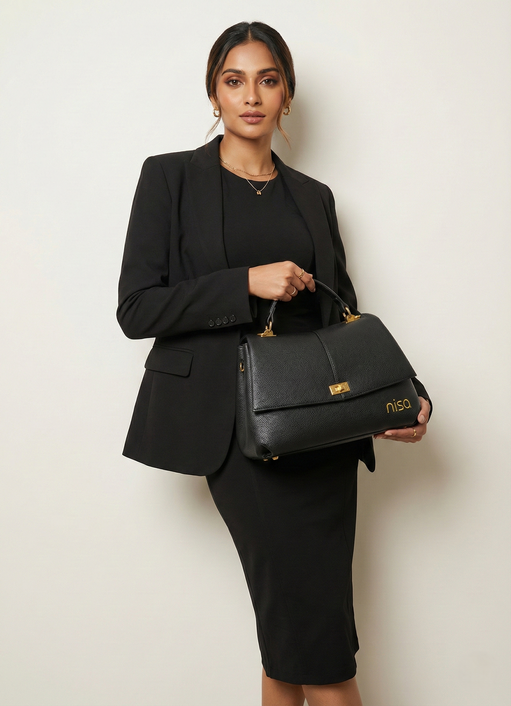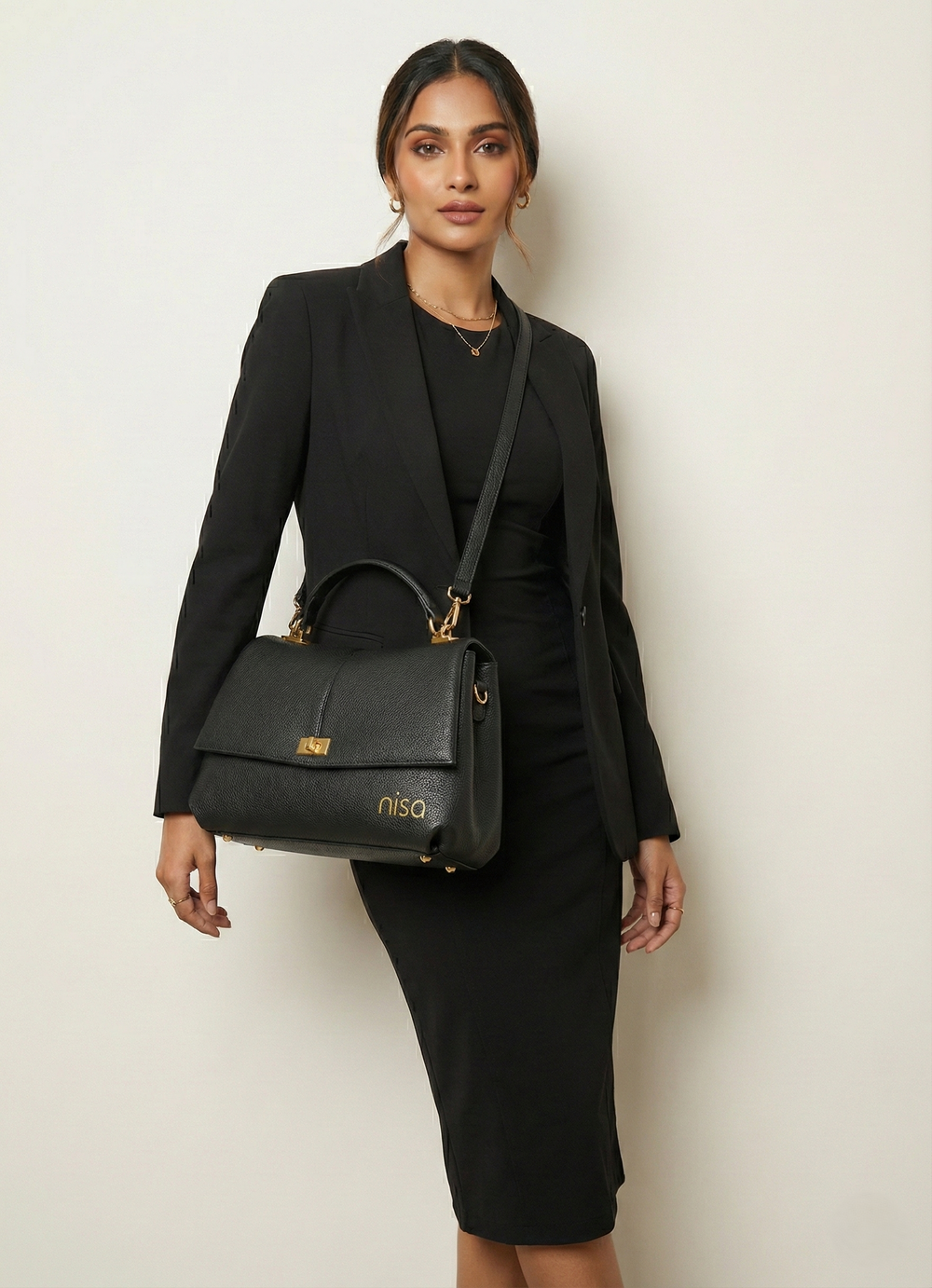 Elevate your everyday style with this timeless black satchel, designed for the modern woman who values both fashion and function. Crafted with a rich, pebbled texture, this bag offers a sophisticated silhouette that transitions effortlessly from the office to evening outings.