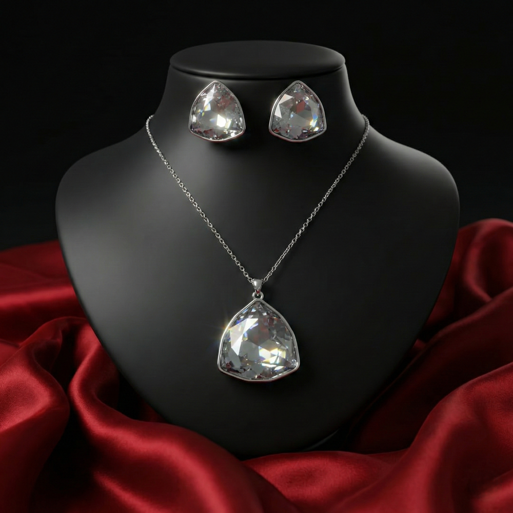 Elevate your everyday style with our Silver-Tone Geometric Crystal Pendant Set. Designed for the modern woman who loves understated glamour, this set features a stunning soft-triangle (trillion-cut) design that catches the light from every angle.