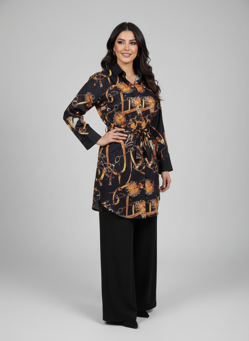 Modestouze Attires Turkish Cord Set for Women Stylish - Poly Rayon Long Sleeves Co Ord Set Mandarin Neck Floral Print Western Co Order Sets for Womens Wear as Office Coat, Travel