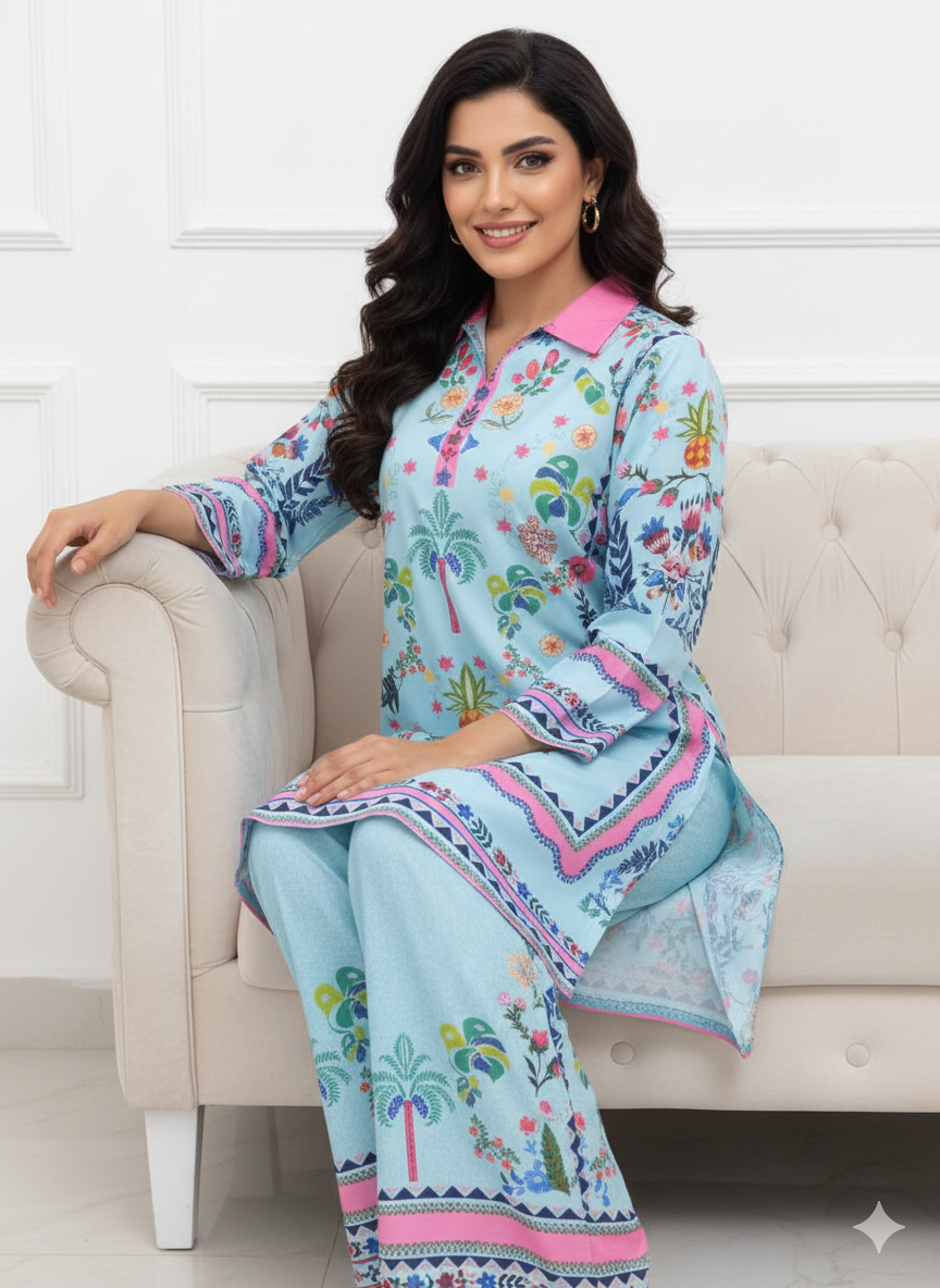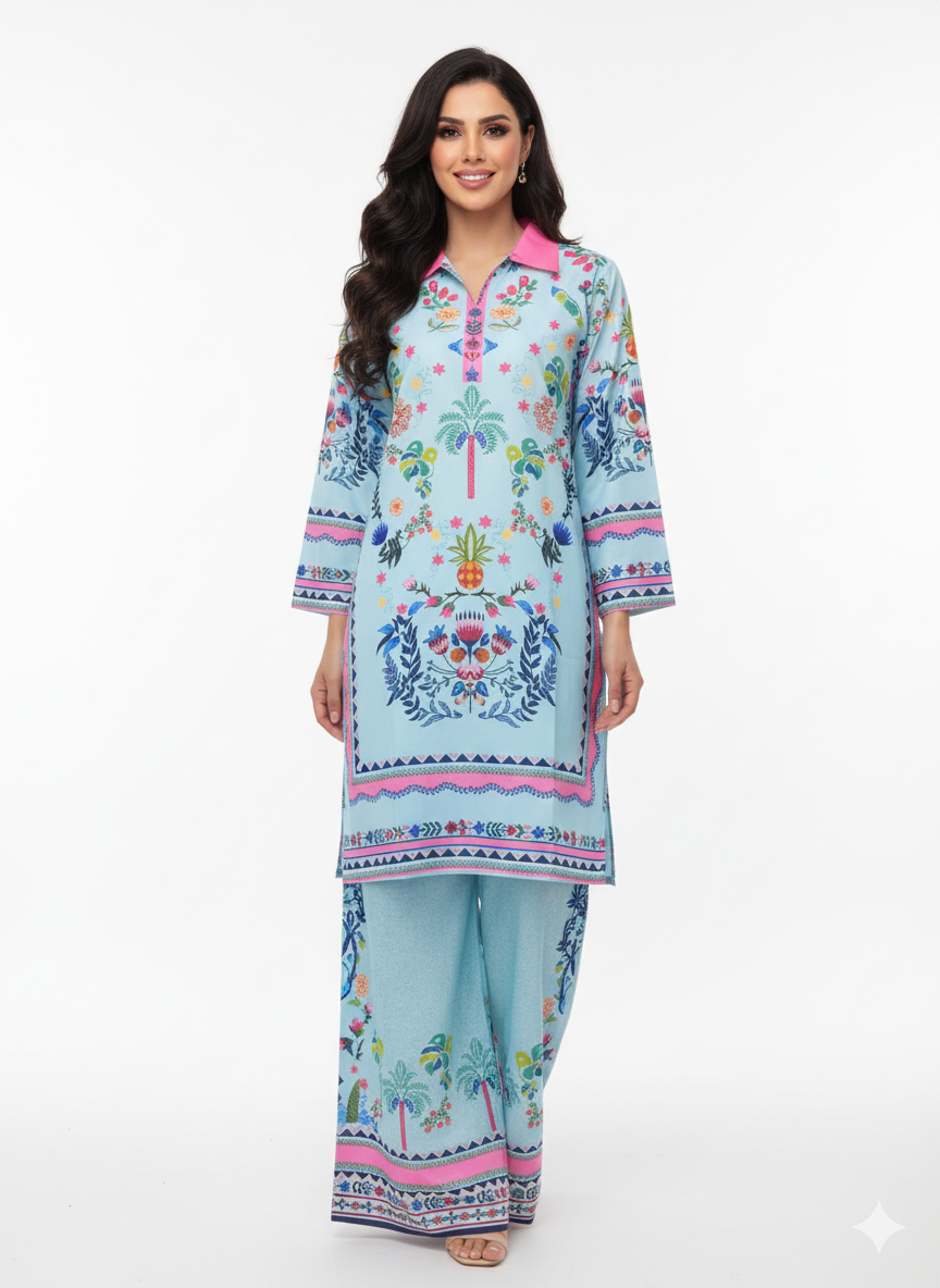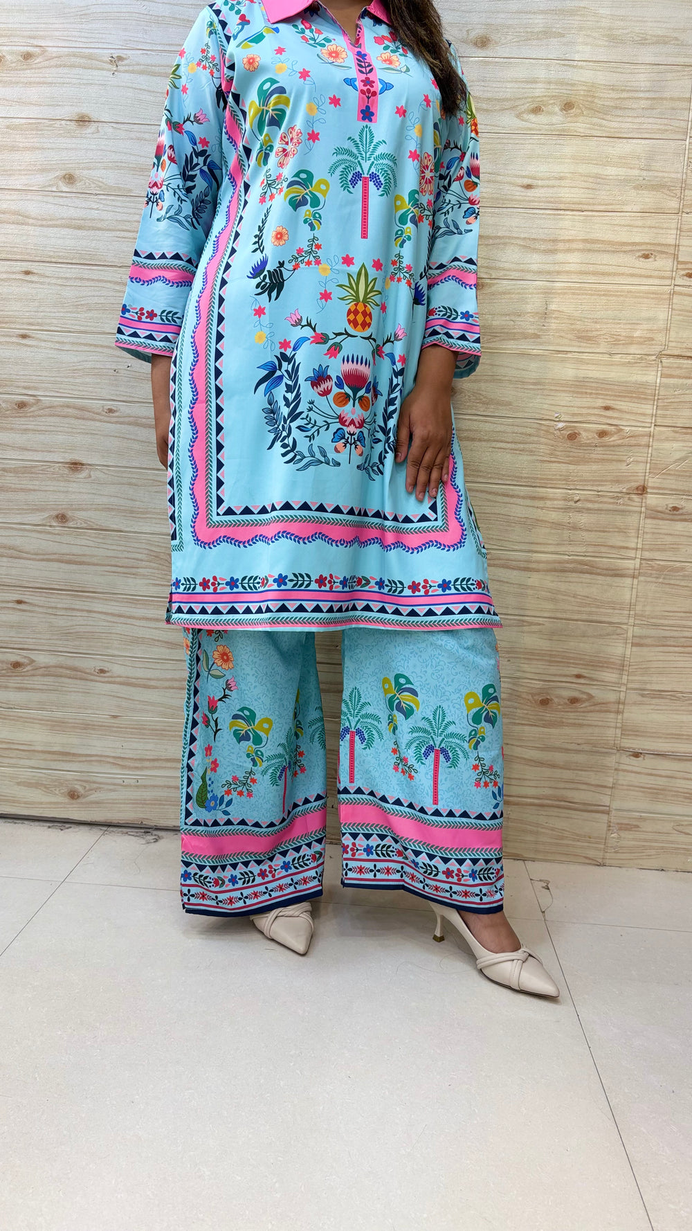 Modestouze Attires Turkish Cord Set for Women Stylish - Poly Rayon Long Sleeves Co Ord Set Mandarin Neck Floral Print Western Co Order Sets for Womens Wear as Office Coat, Travel