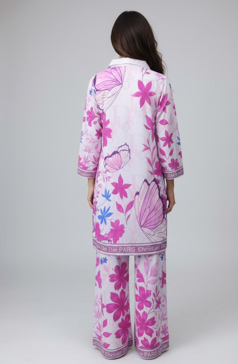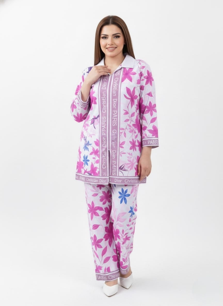 Modestouze Attires Turkish Cord Set for Women Stylish - Poly Rayon Long Sleeves Co Ord Set Mandarin Neck Floral Print Western Co Order Sets for Womens Wear as Office Coat, Travel